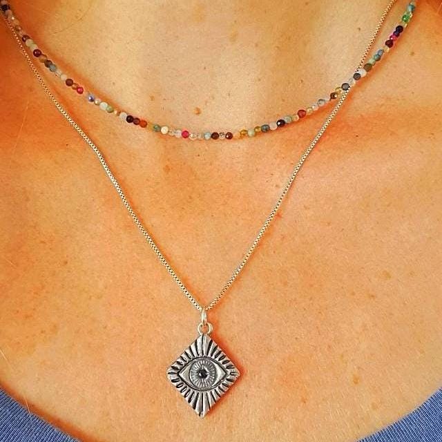 This talisman necklace features the Eye of Providence pendant and a sterling silver chain. It is known as a symbol of protection, good luck and blessing. The Eye of Providence has been an enduring symbol for centuries across cultures, religions and regions.