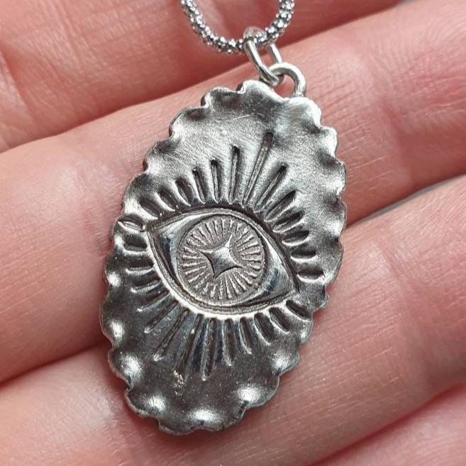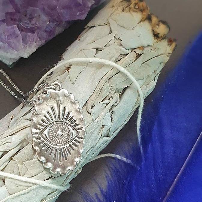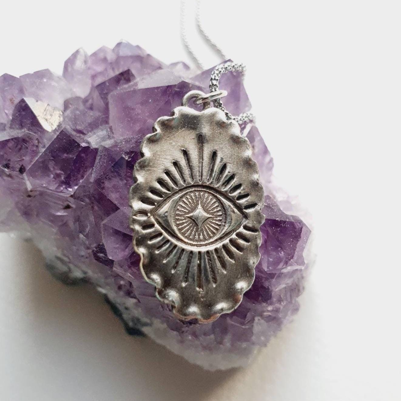 Beautifully handcrafted in Zurich, Switzerland from eco-friendly recycled 999 fine silver, this mythical Evil Eye pendant is my original design.