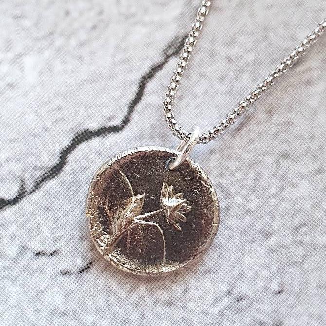 Fine silver, also called pure silver or .999, has a higher silver content 99.9% versus sterling which has 92.5% silver. It is brighter and more tarnish resistant. The silver comes from recycling silver used in a number of industries including photographic and jewelry making.