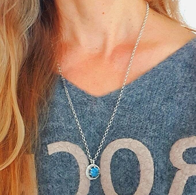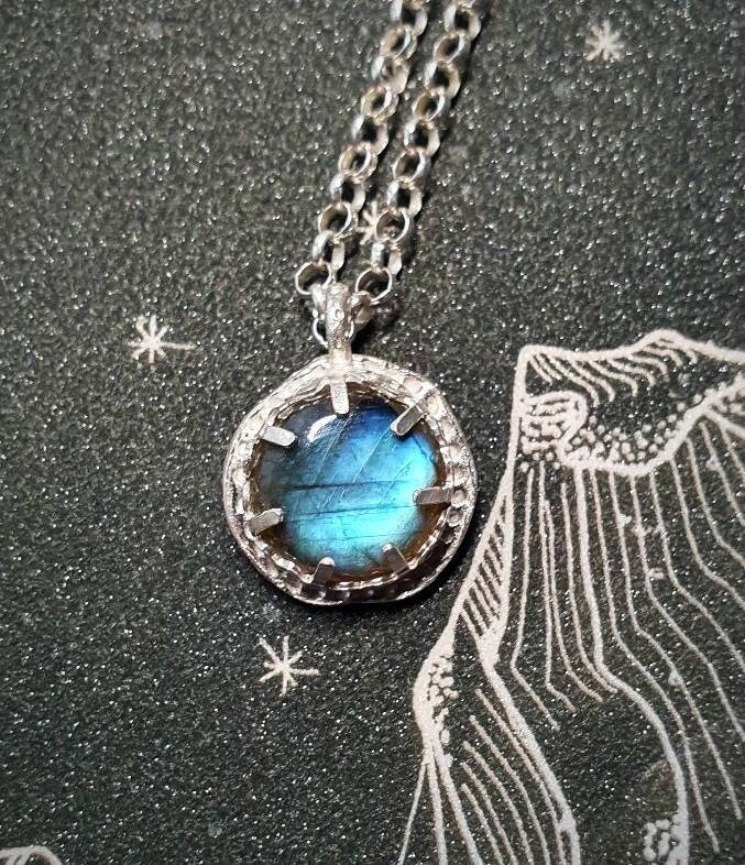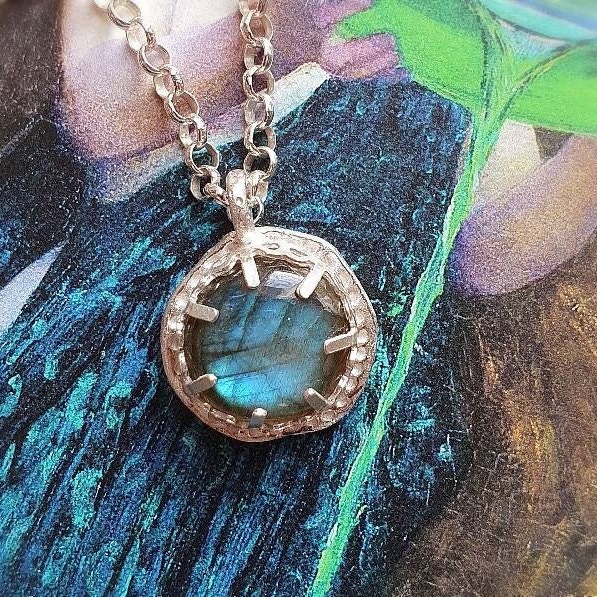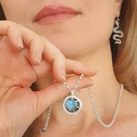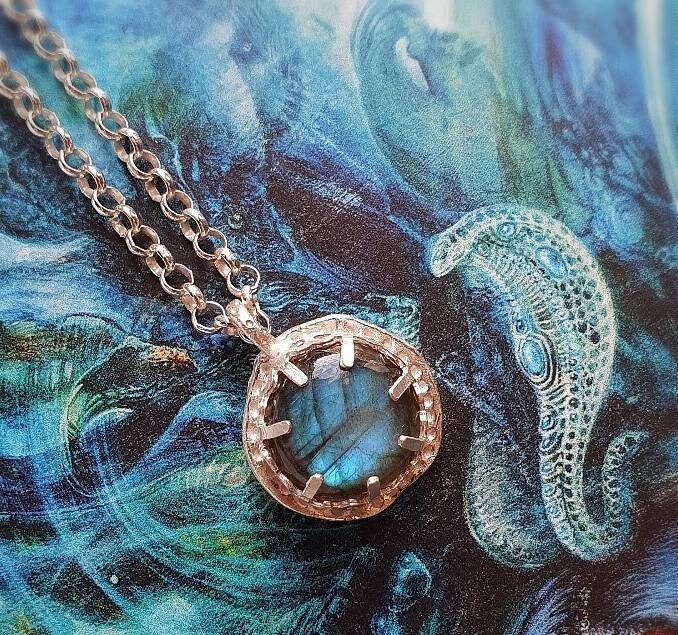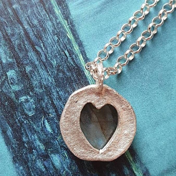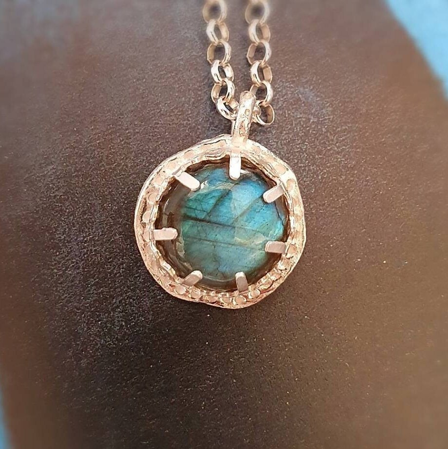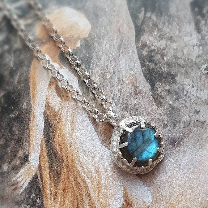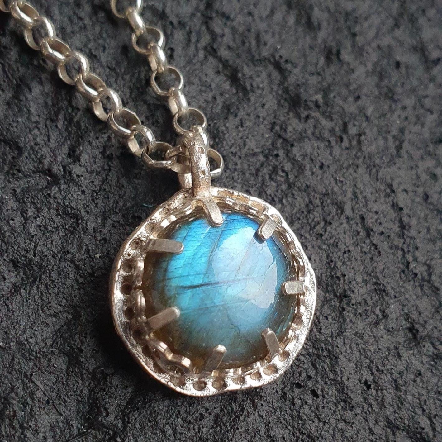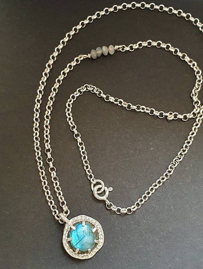 You can order the pendant alone or together with a solid silver rolo chain adorned with 4 small grey Labradorite stones.