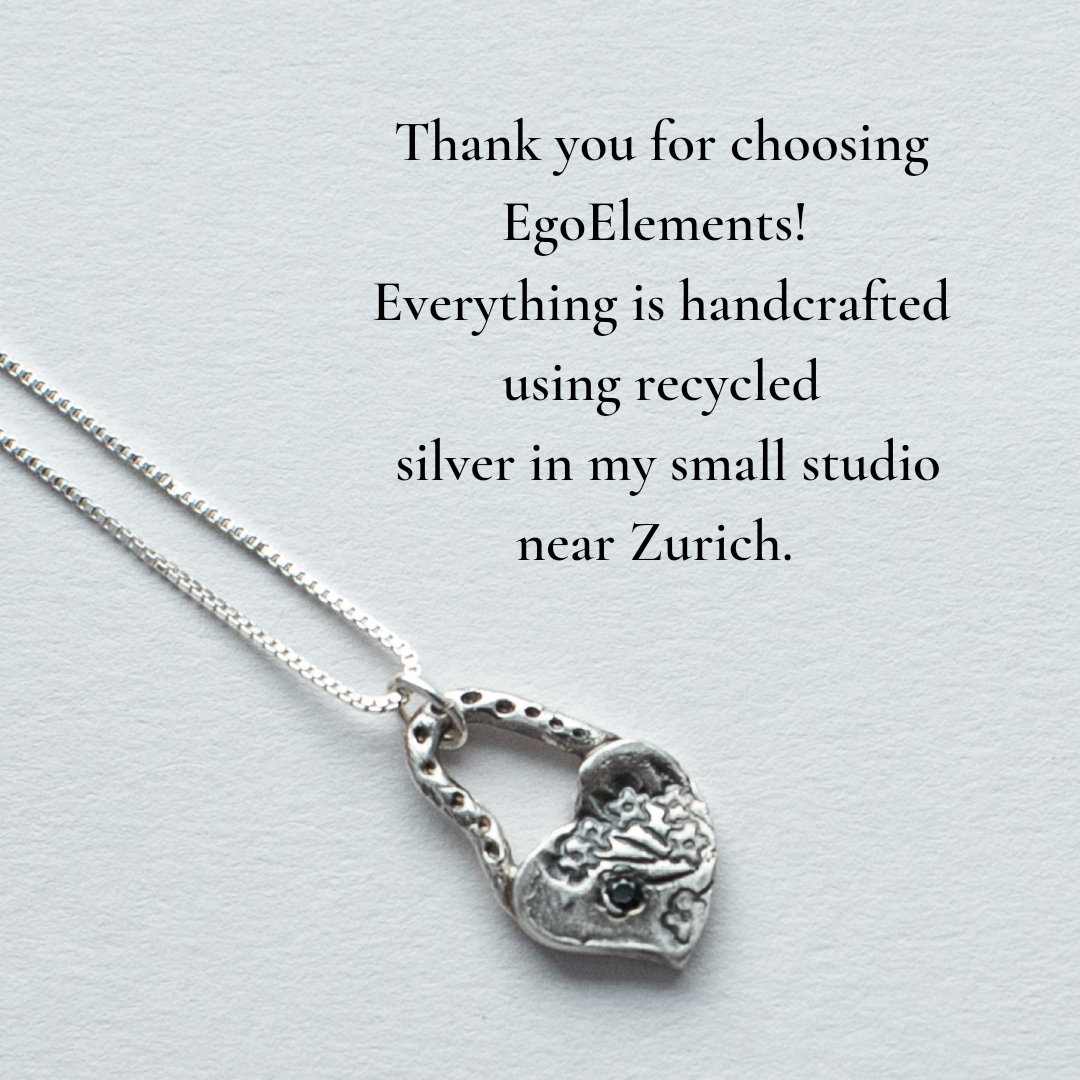 To keep your jewelry in the best condition please avoid the contact with moisture (water, perfumes, lotions) and store in a dry place. Please use the silver polishing cloth to maintain your jewelry in the best condition.