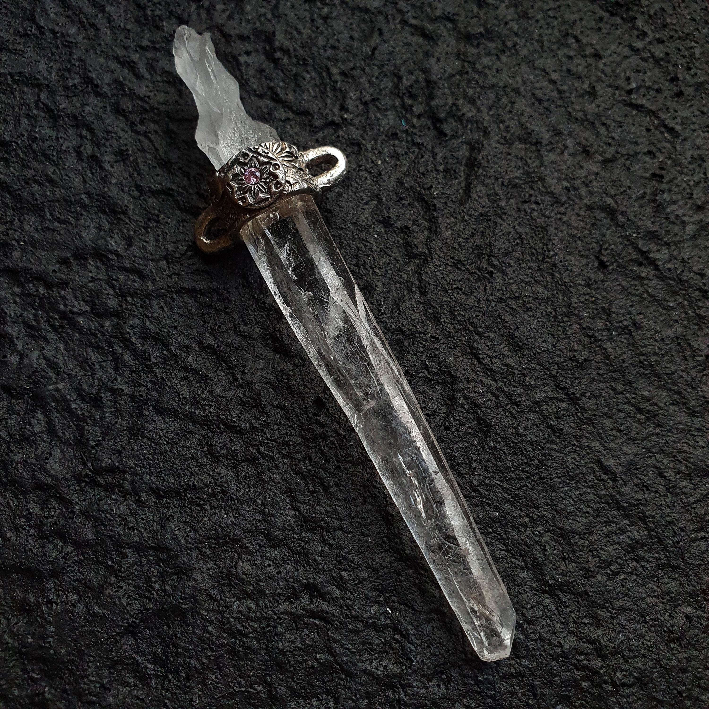 This beautiful crystal point necklace features unique Laser Quartz (Diamantina, Brasilien) in a recycled 999. solid silver and adorned with two Cubic Zirconia.