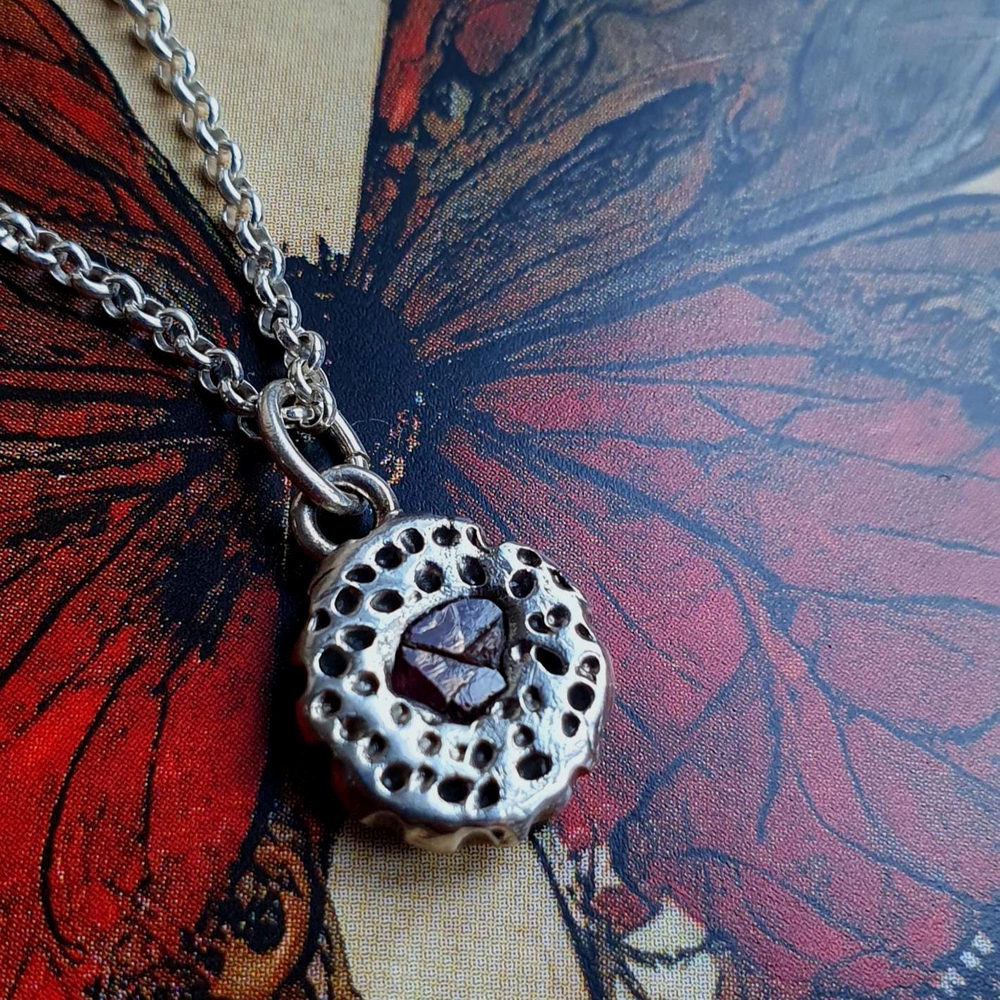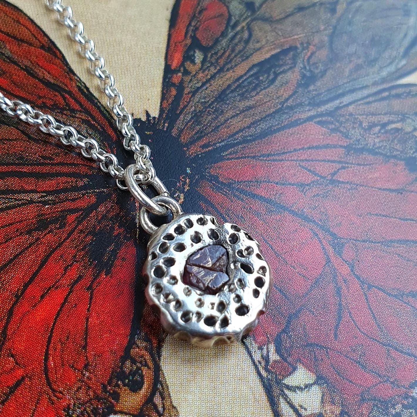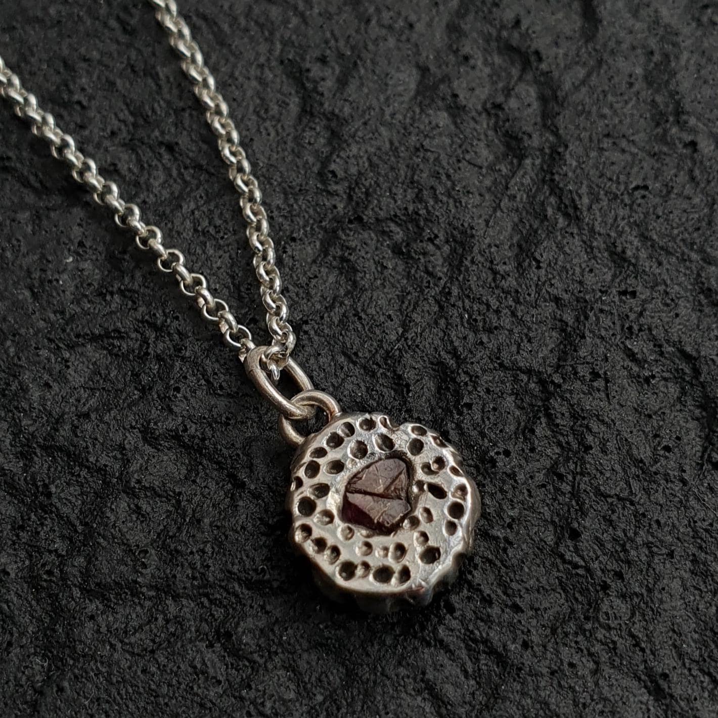 The pendant is handcrafted from recycled, pure silver, which has a higher silver content 99.9% versus sterling which has 92.5% silver.