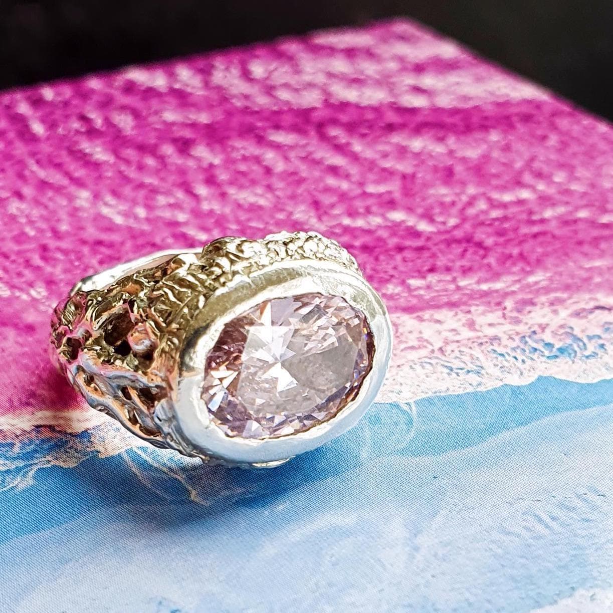 Featuring my new solid silver Signet Ring with melted look and beautiful pink Cubic Zirconia.