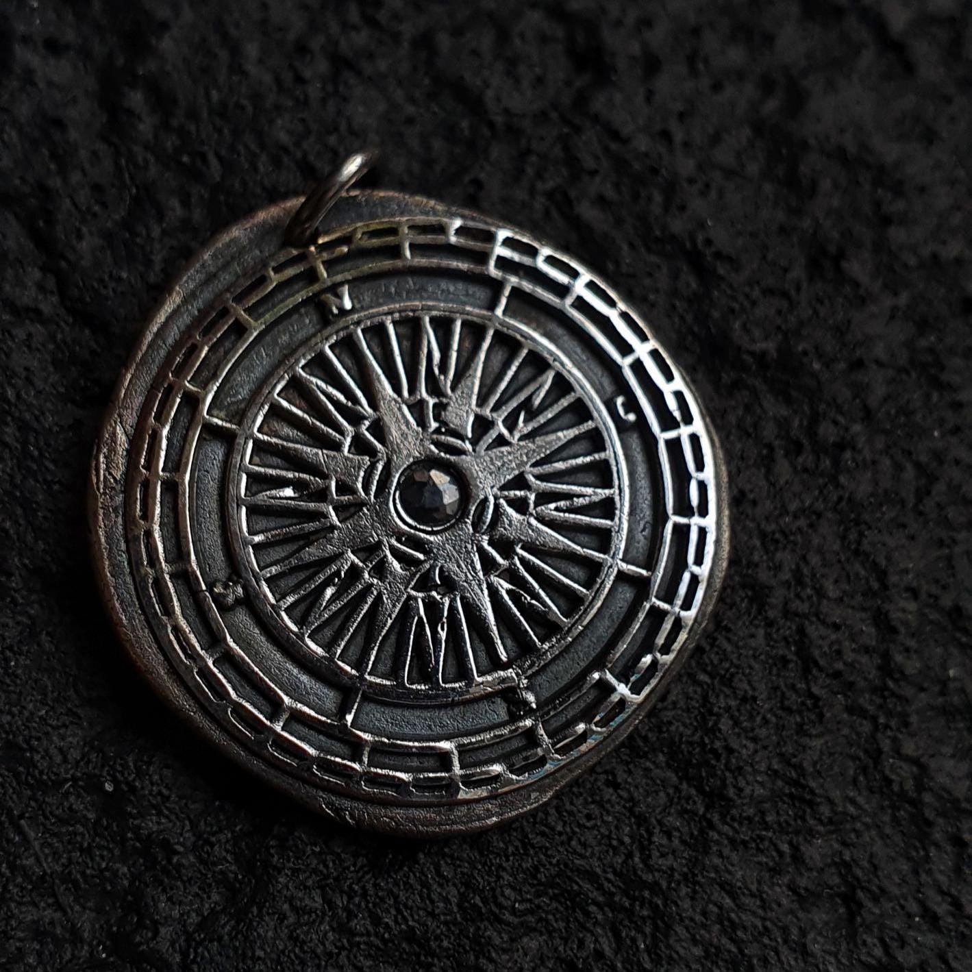 This one-of-a-kind necklace features the solid silver compass pendant on a sterling silver chain.