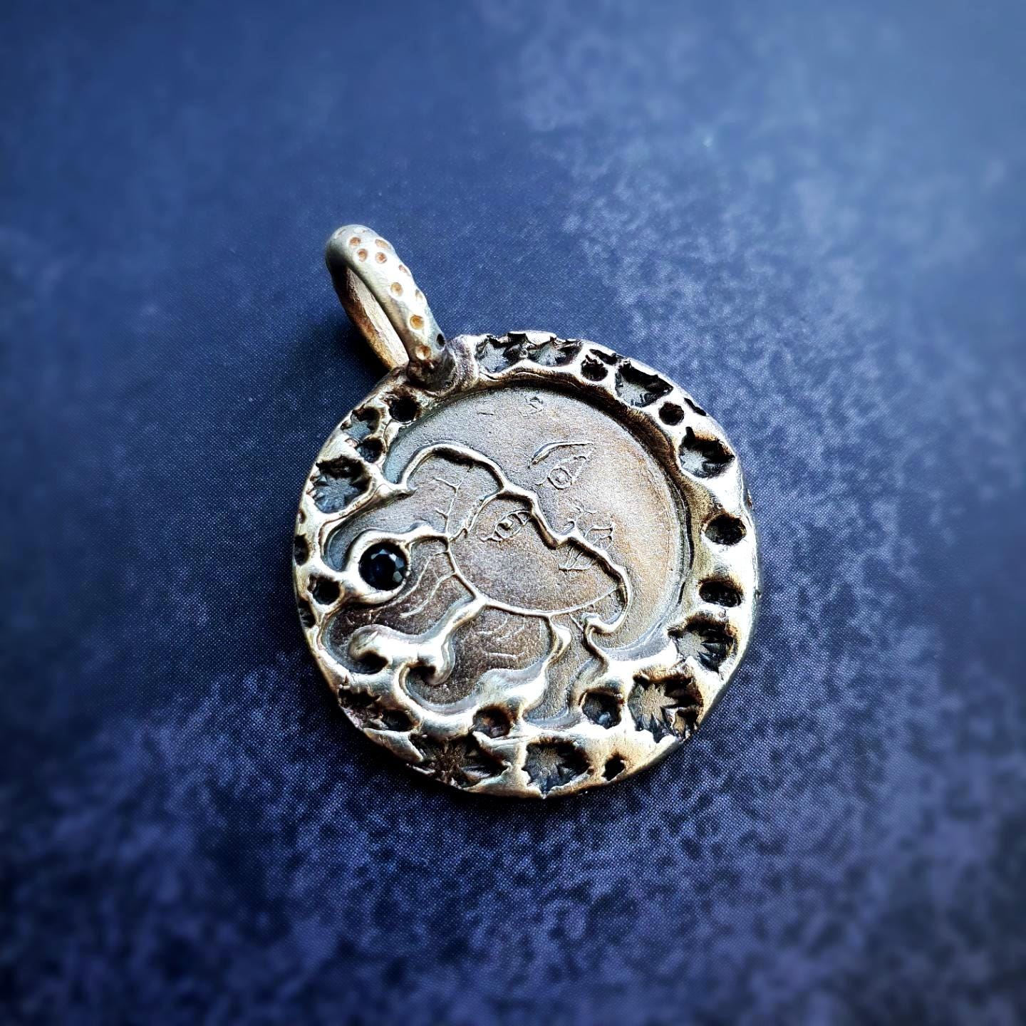 This pendant is stamped on the reverse side with my maker mark and .999, guaranteeing you that this is made from 999. fine silver.