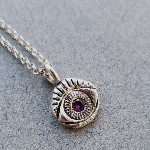 This protection Evil Eye amulet features one-of-a-kind handcrafted silver pendant adorned with a beautiful Cubic Zirconia stone on a sterling silver chain or hand-sewn ribbon.