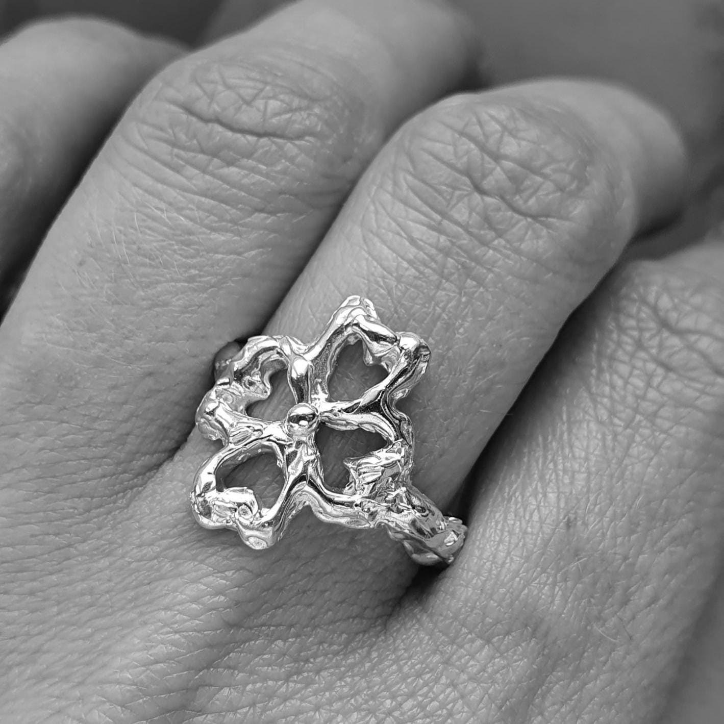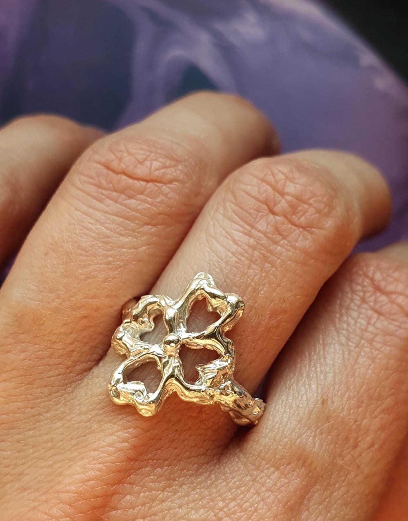 This Four Leaf Clover Ring is handcrafted using the ancient lost-wax method — a slow, intentional process that allows each piece to hold its own character and energy. No two rings ever come out exactly the same, making your talisman truly unique.
