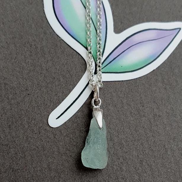 Beautiful and delicate raw Aquamarine on a 925 sterling silver chain.