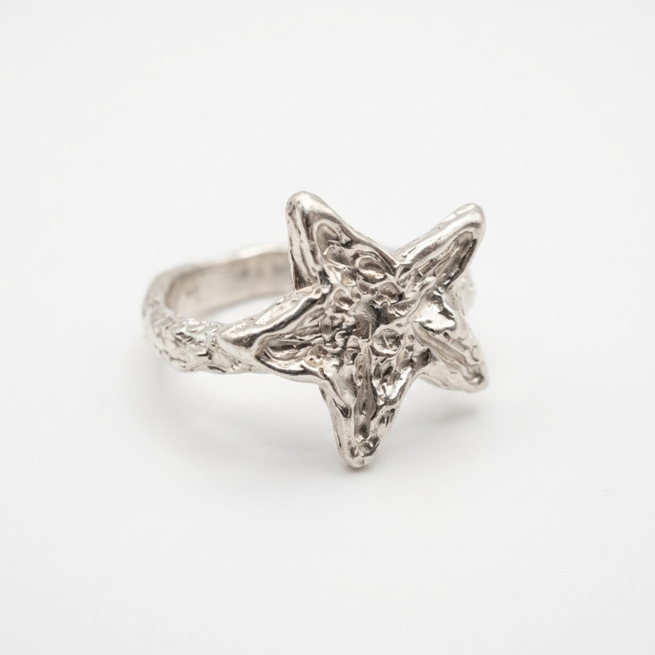 This chunky Star ring with trendy molten look is handcrafted using antique lost wax method and casted in solid sterling silver.