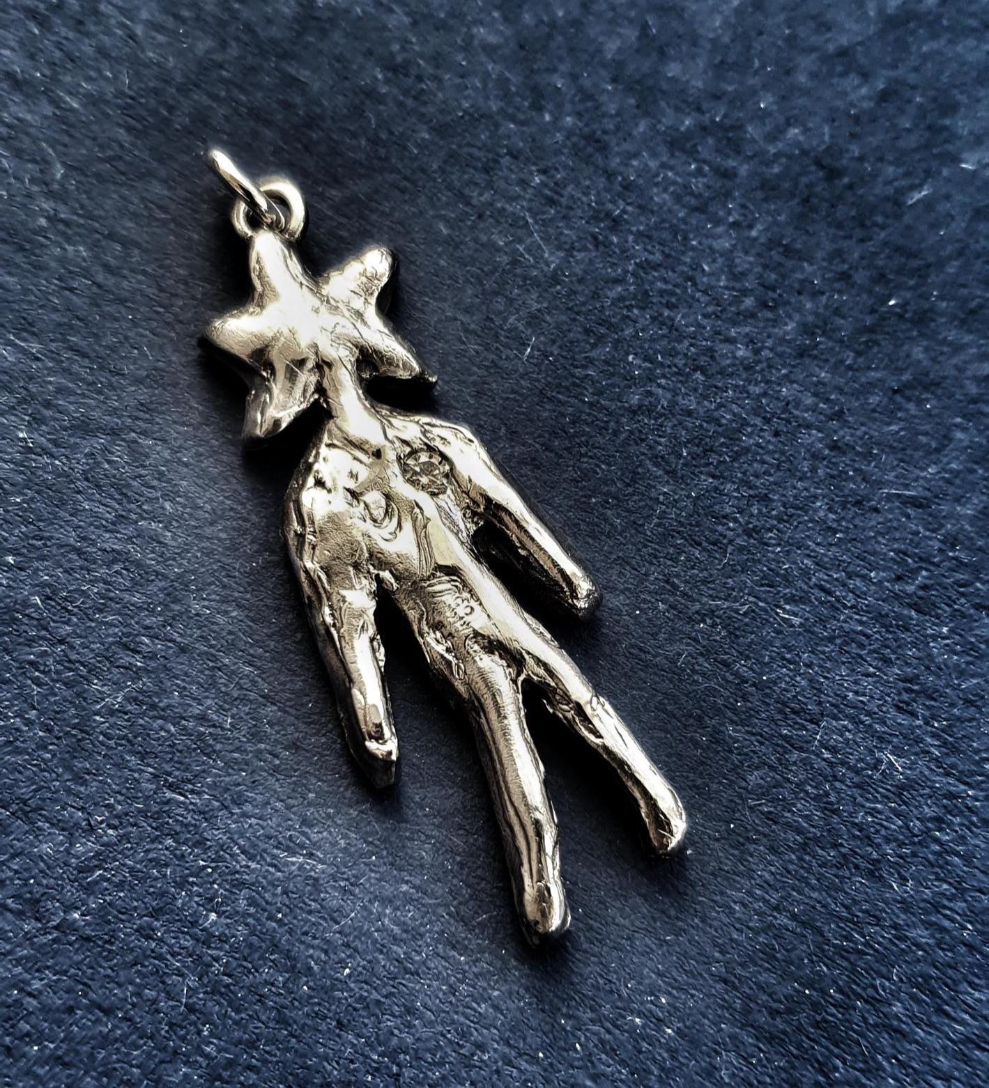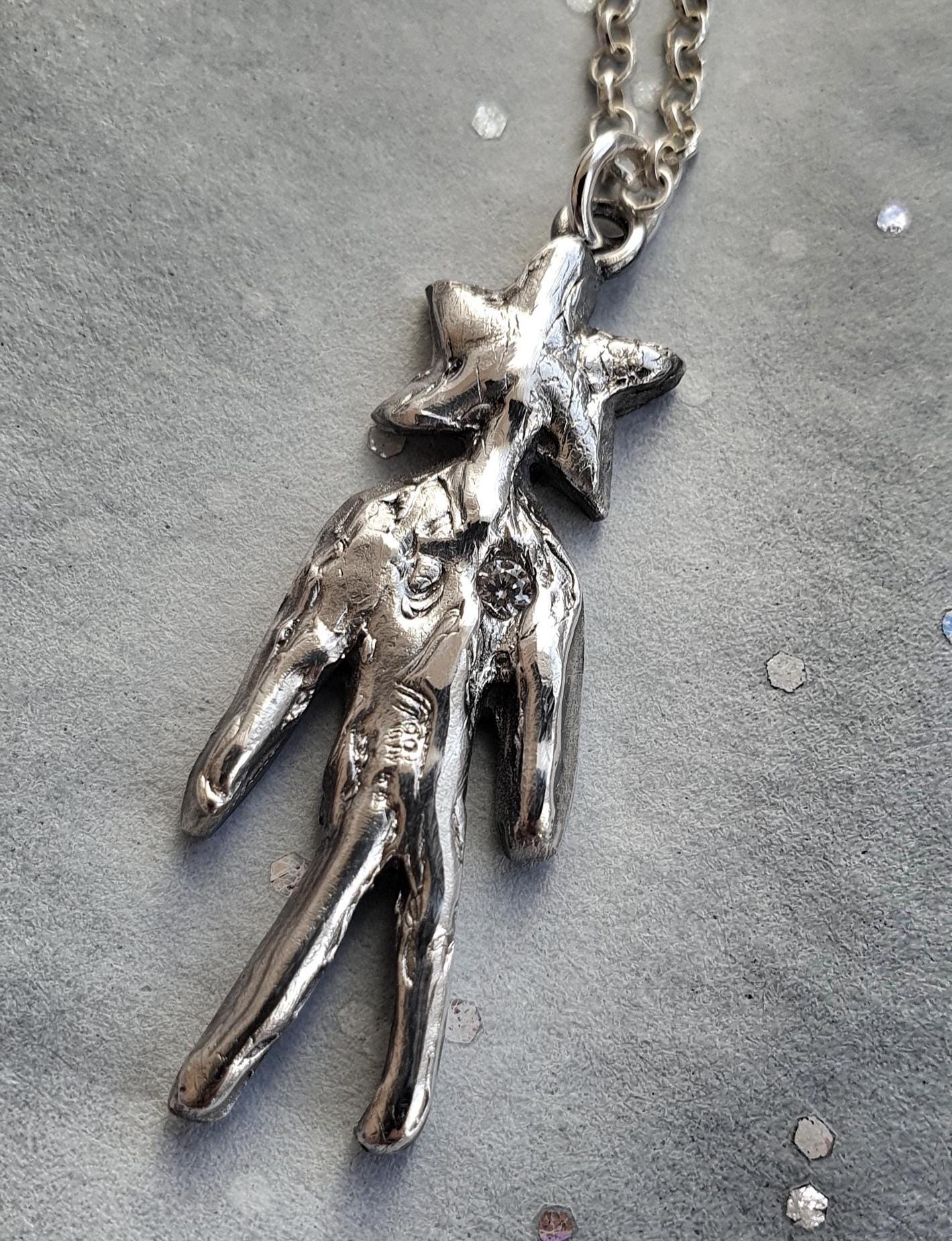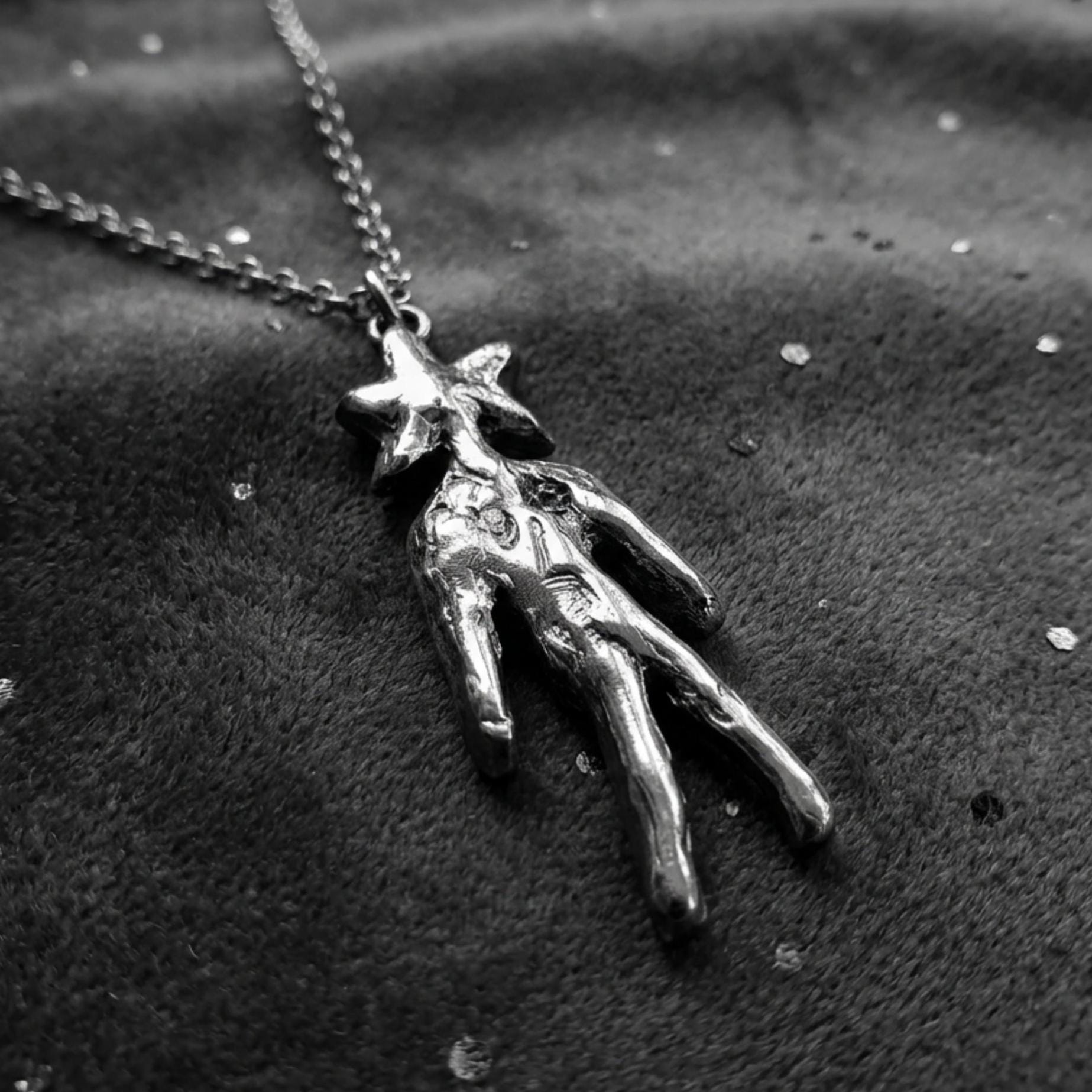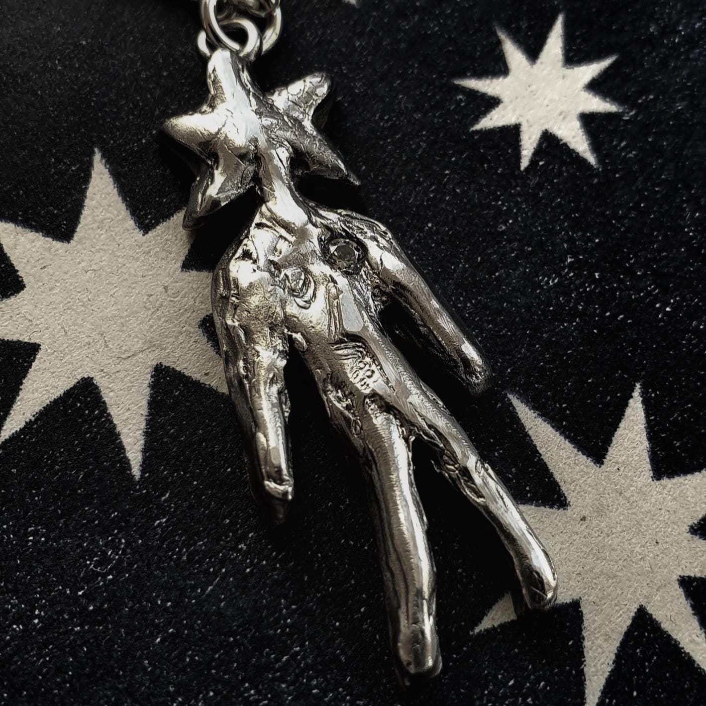 This Star Soul necklace features solid silver Star Man pendant adorned with cubic zirconia on a sterling silver chain.