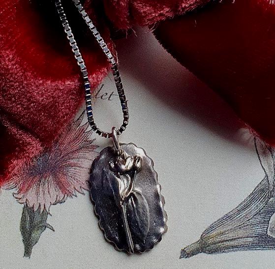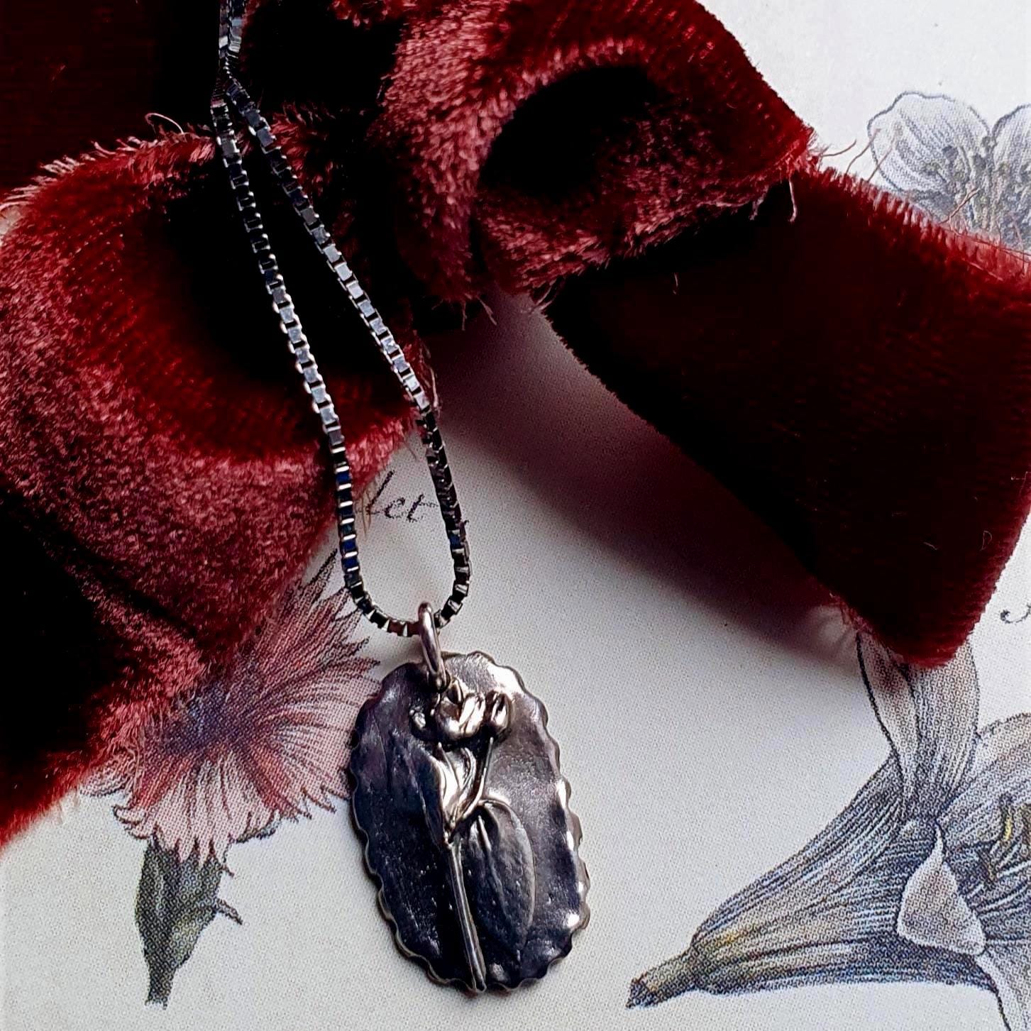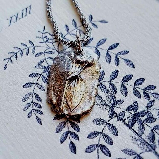 It’s a simple, elegant piece that pairs beautifully with other necklaces or stands gracefully on its own. The soft texture of the flower print gives it a natural, organic look that feels timeless and grounded.