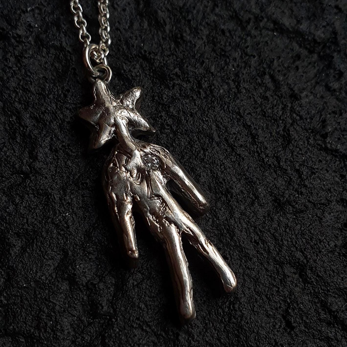 Handcrafted one-of-a-kind Star Man pendant in recycled fine silver with cubic zirconia. A symbolic necklace representing inner light and quiet strength.