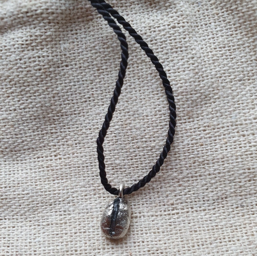 This delicate Coffee bean pendant is handmade from 999. recycled fine silver. It is suitable for women and men. It can be a special gift for a coffee lover.