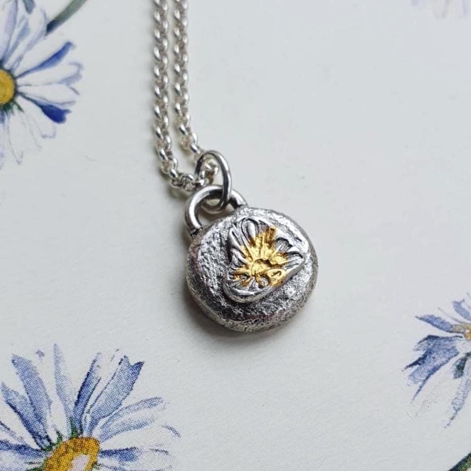 This one-of-a-kind heart pendant features solid silver charm with gold plated details.