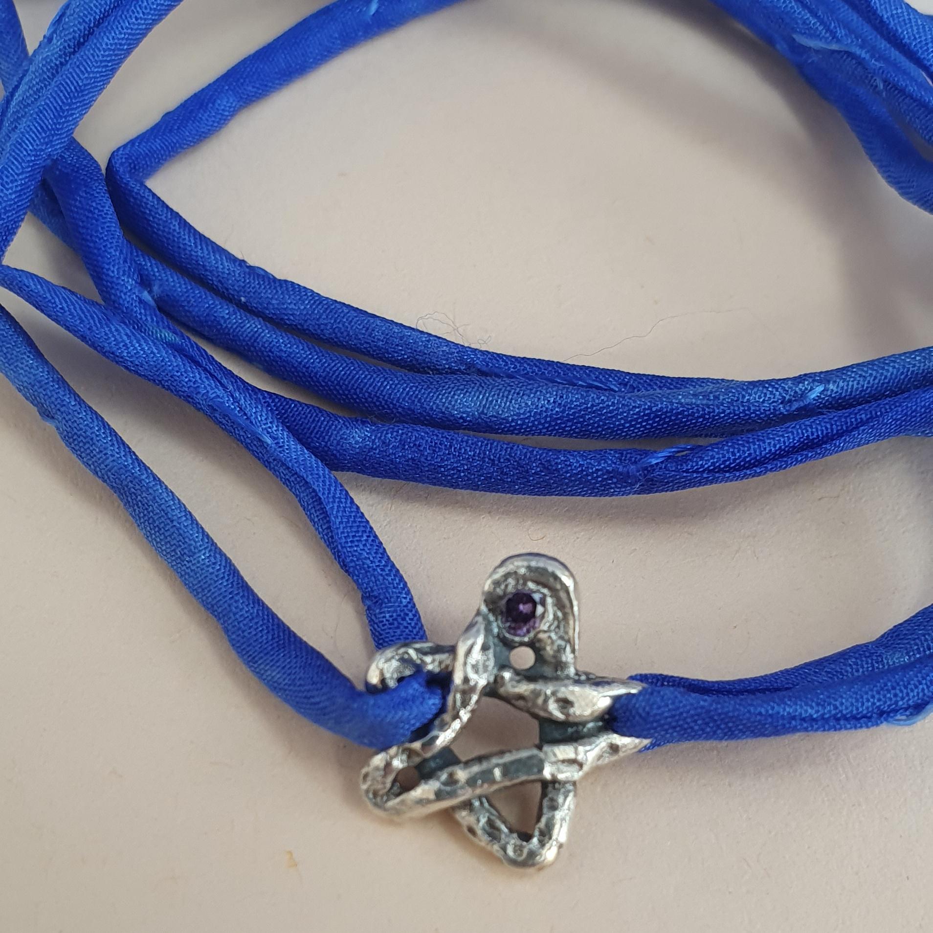 This celestial bracelet features solid silver star charm with a beautiful cubic Zirconia stone and a natural silk ribbon.