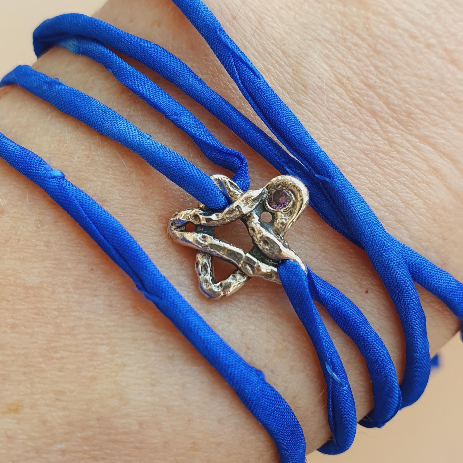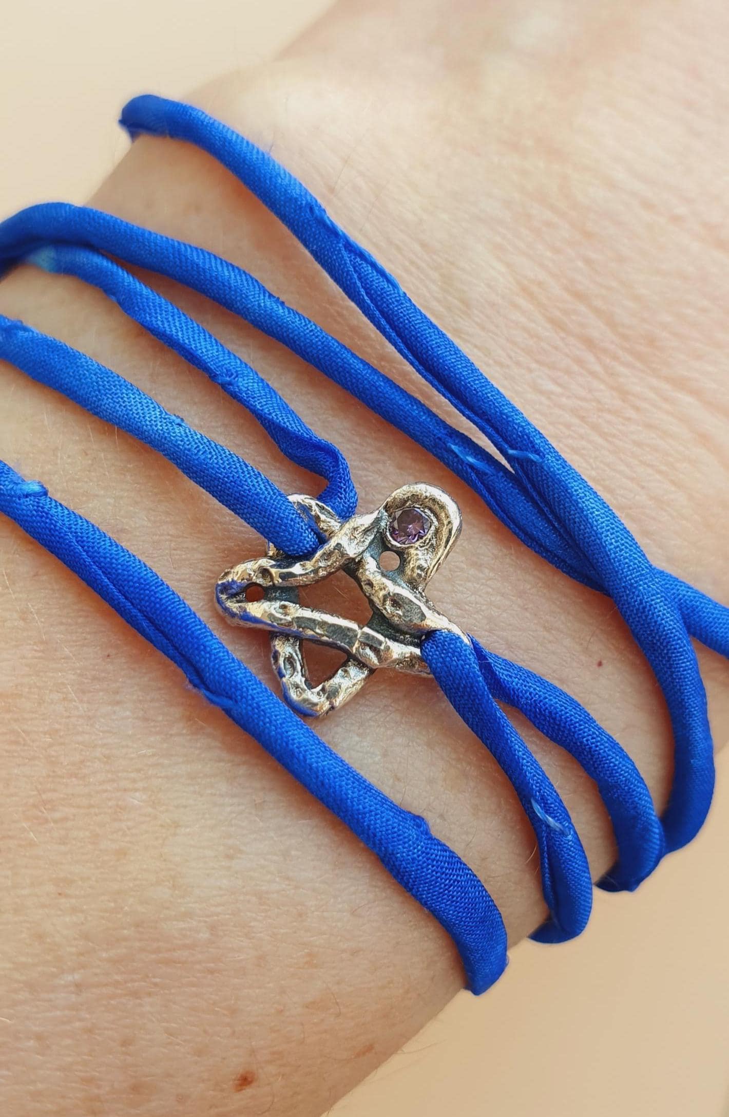 The lenght of the bracelet is simply adjustable: wrap around your wrist and then tight a knot.