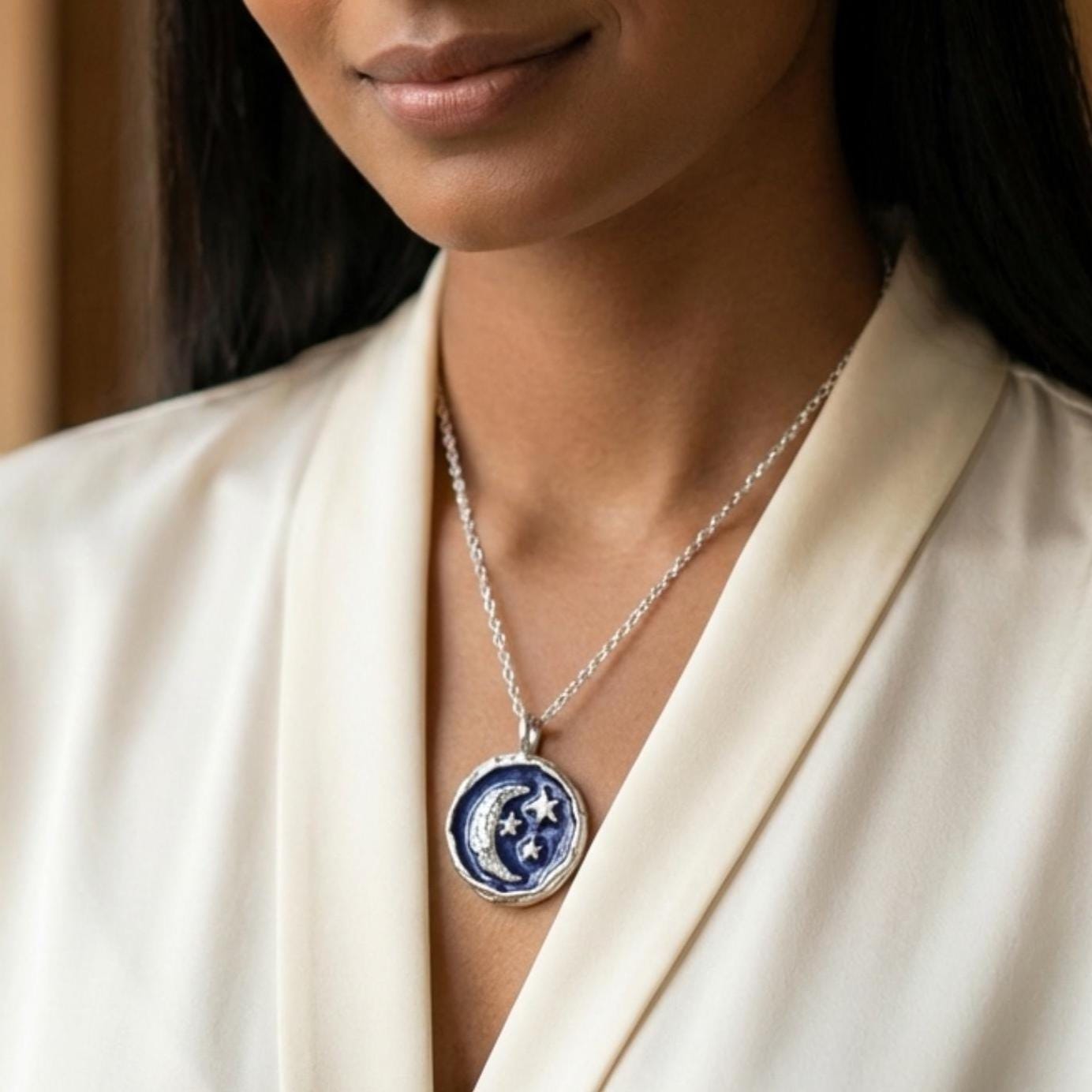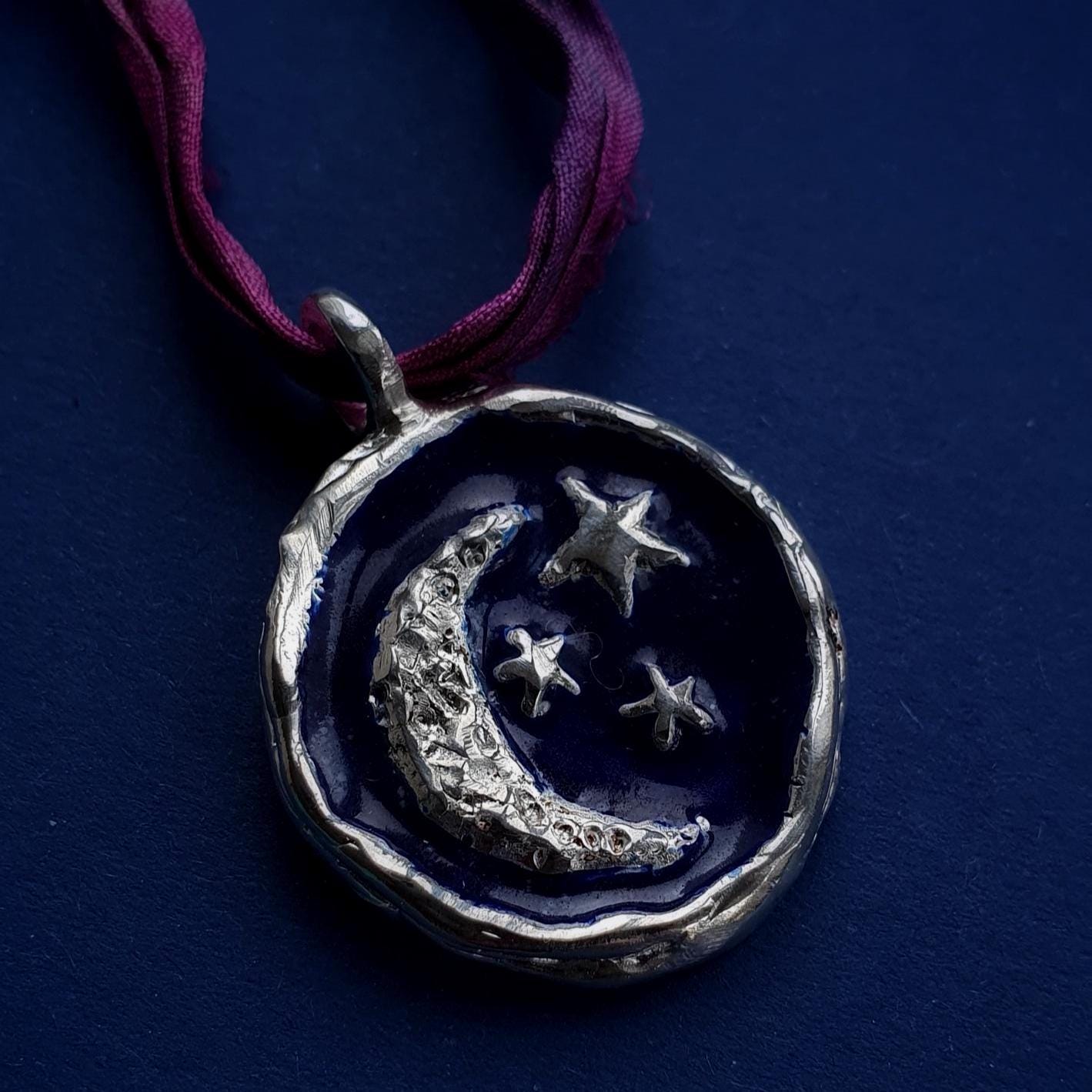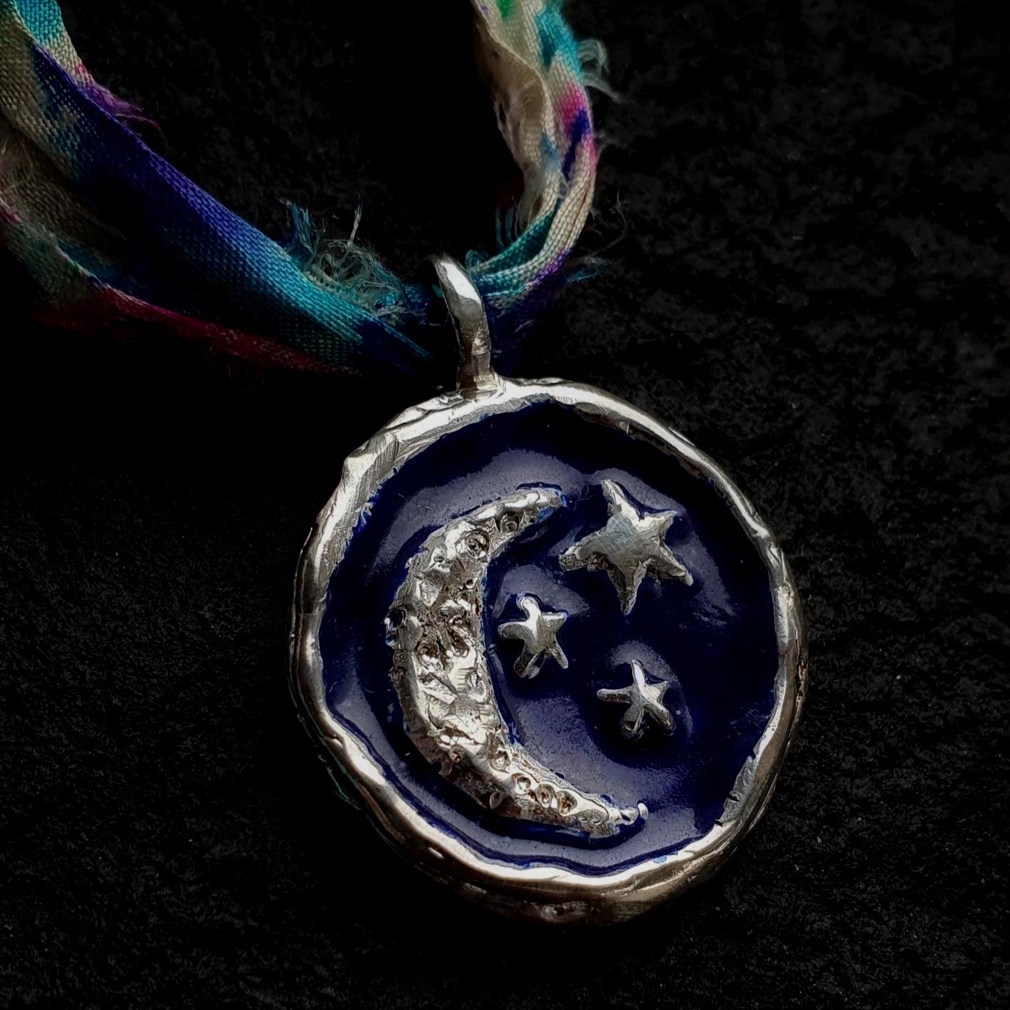 This Starry Night pendant is handcrafted in solid sterling silver using the antique lost wax method, allowing the metal to form naturally with depth and character.