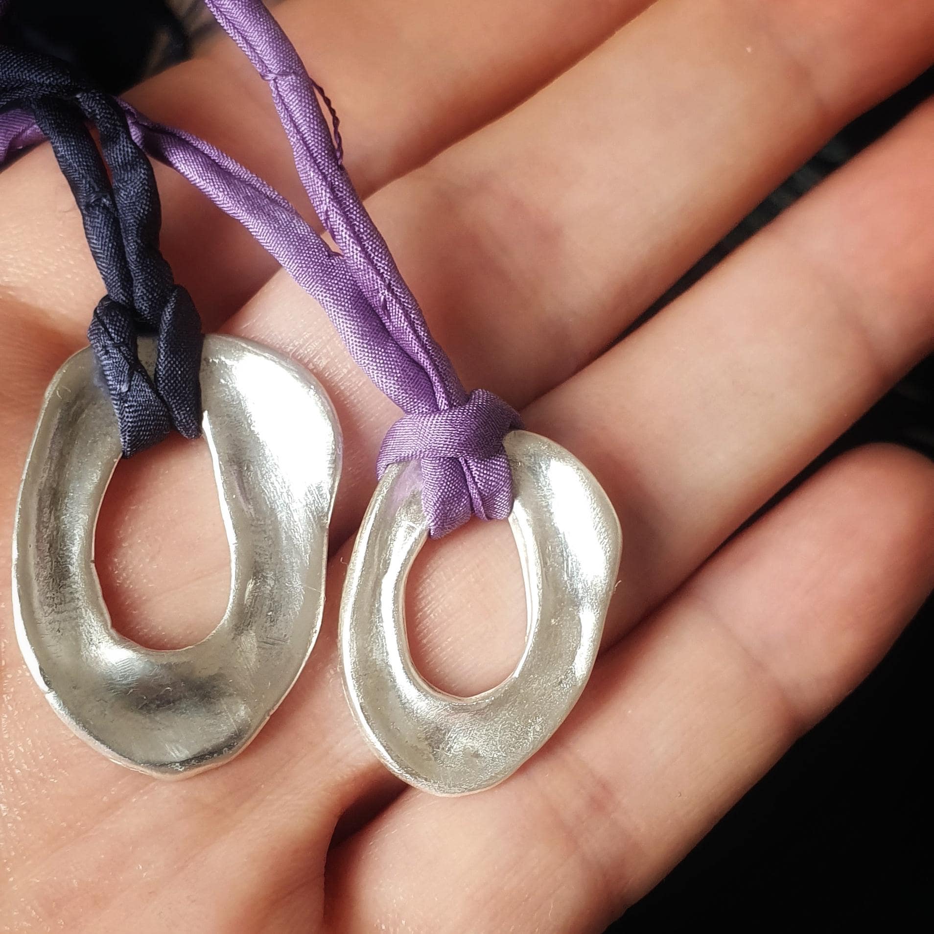 This celestial Nebula necklace features solid silver organic pendant on a natural silk ribbon.
