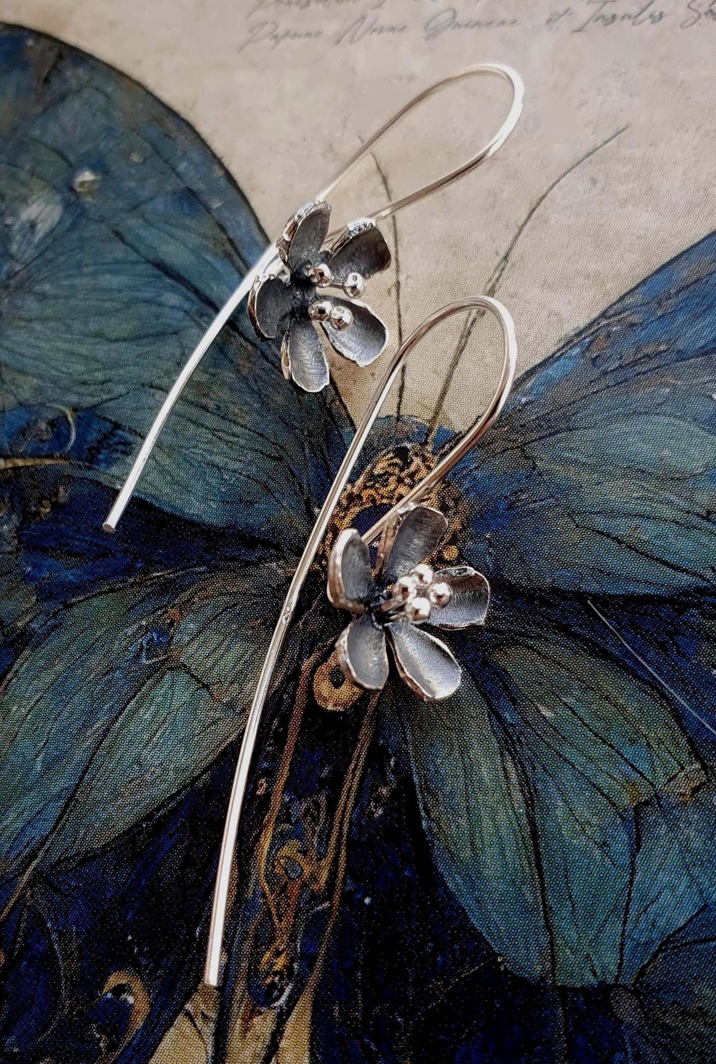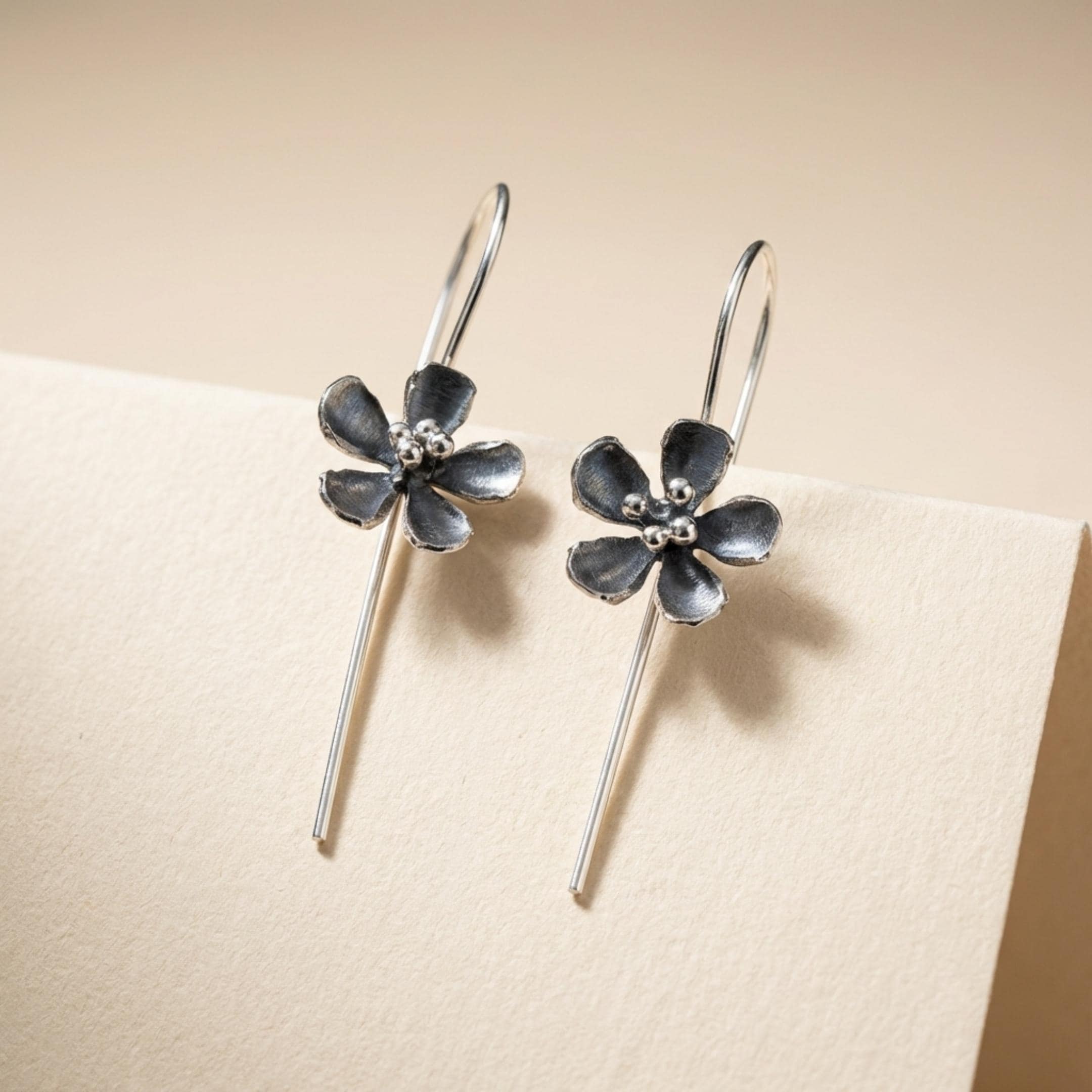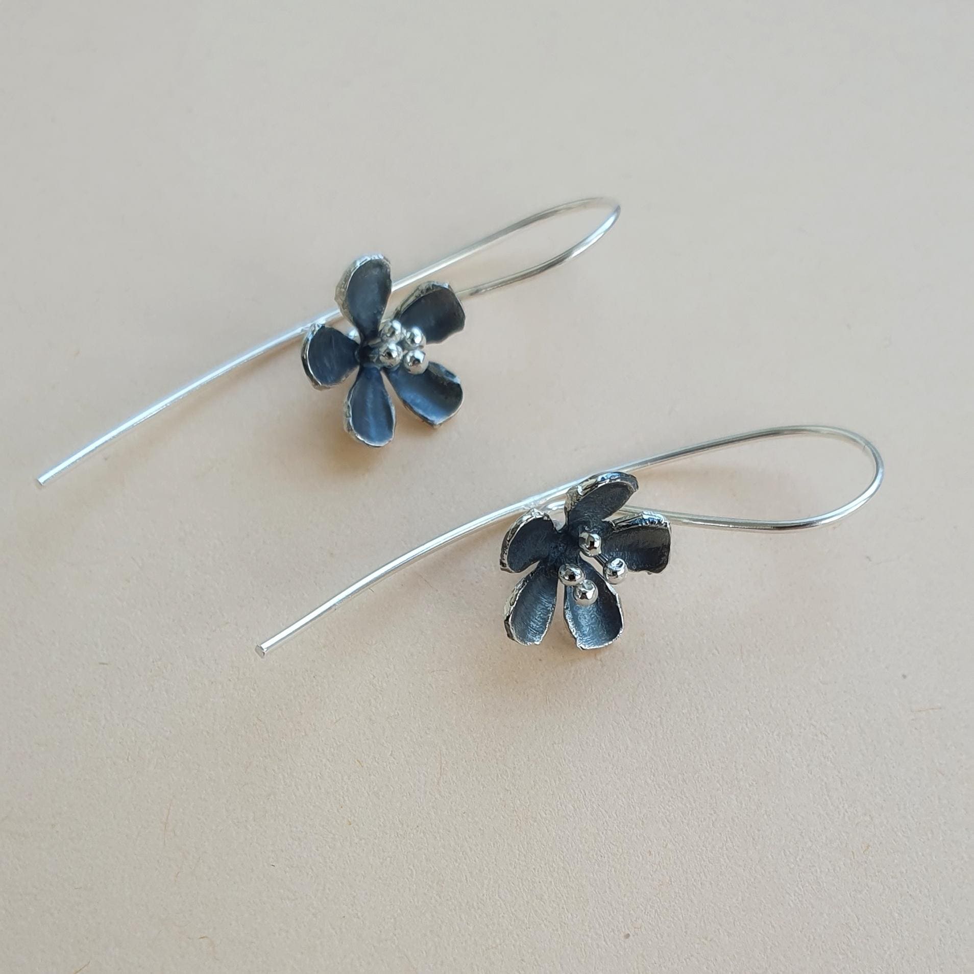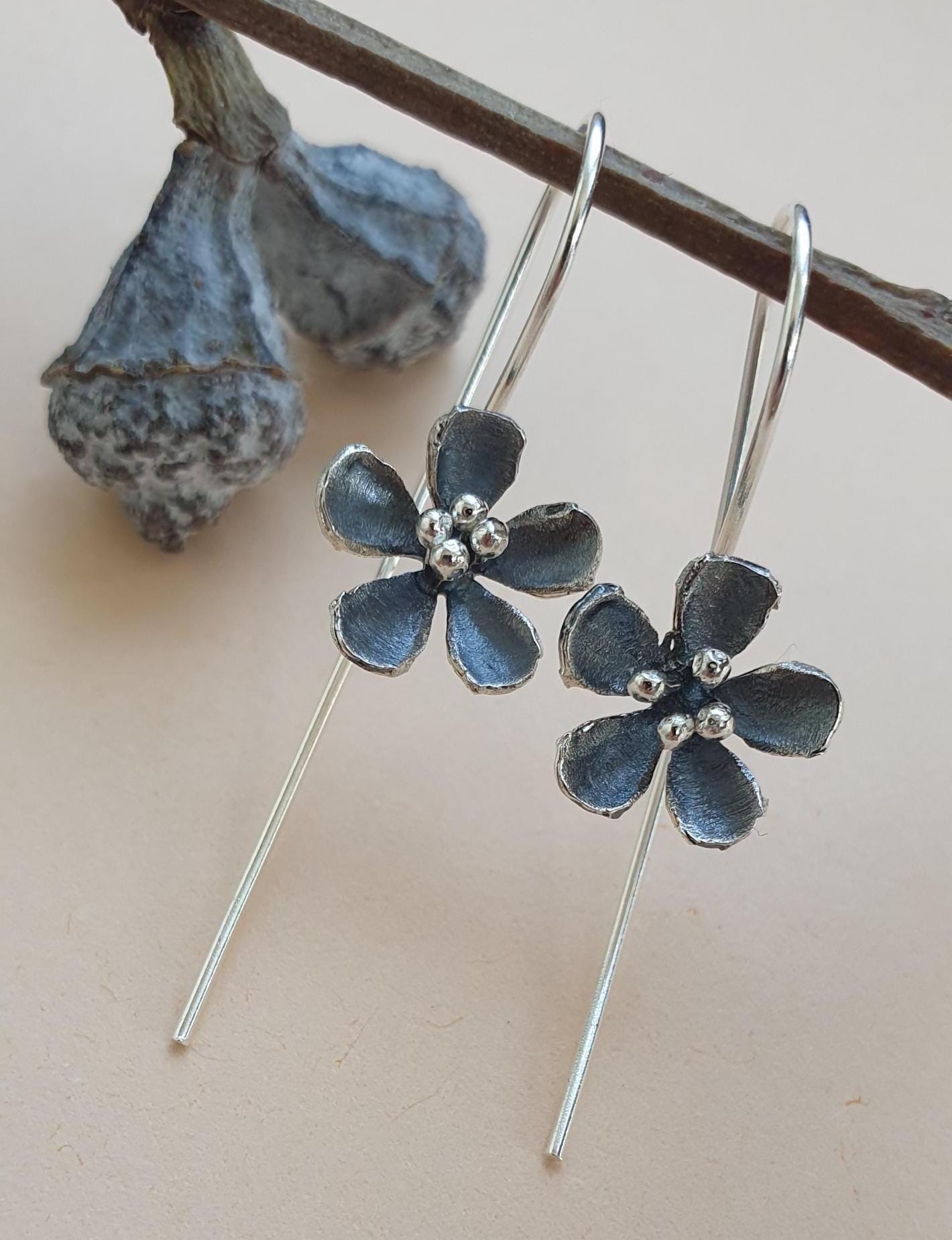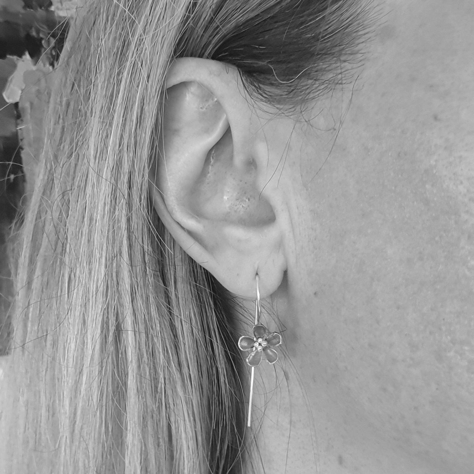 These dangle flower earrings feature 925 sterling silver hooks and tiny flowers.